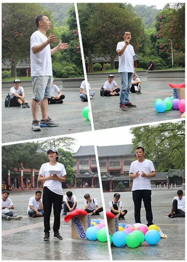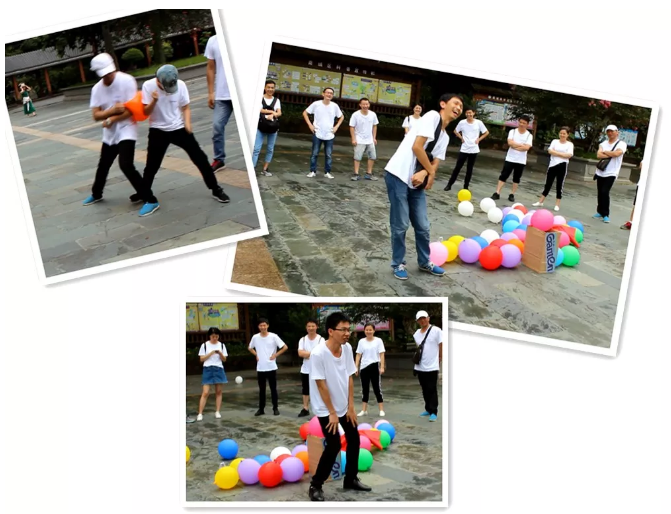 “擠壓氣球”游戲,一展團隊風采,大家齊心協(xié)力壓氣球,“啪啪啪”聲響如雷,笑成一片。